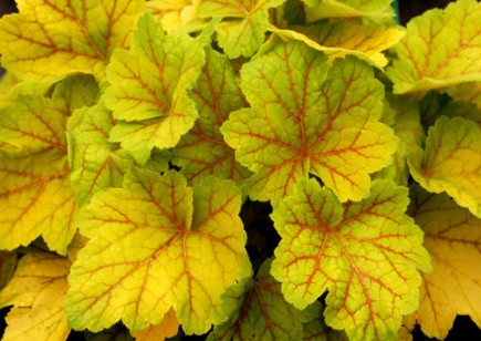 Coral Bells, Heuchera x ‘Electra’: cultivar parented by two tough species native to PA and one Pacific Northwest species; with leaves and veins like this, who can resist? (photo Terra Nova Nurseries).
