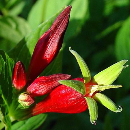 Indian Pink, Spigelia marilandica: there is no better way to get me going than to write yet one more shade gardening article that starts “Now you may not be able to have showy flowers in the shade, but….” ; native species to PA (photo Arrowhead Alpines)