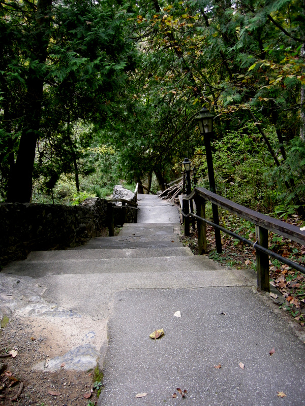 You enter the gorge where the bridge is located down this steep stairway through the woods (or you can take a shuttle bus).