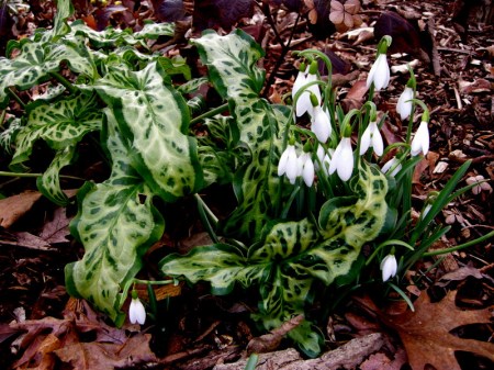 » Galanthus ‘Atkinsii’ & Arum italicum ‘Pictum’