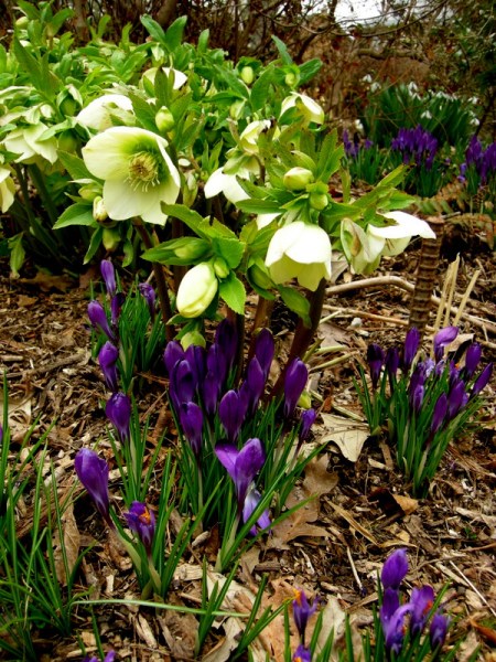 » Crocus tommasinianus, Helleborus x hybridus