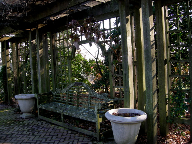 A shady pergola behind Cunningham House, much appreciated in summer.