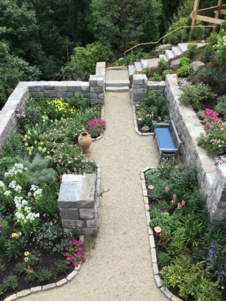 According to landscape historian Patrick Chasse, the flower gardens were originally planned as cutting gardens for the Eyrie (photo above), the Rockefeller’s 100-room mansion, which was later torn down. Plantings were calculated by the number of rooms, their colors, and the number of vases to be filled. The whole area was flowers with minor access paths for servants.
