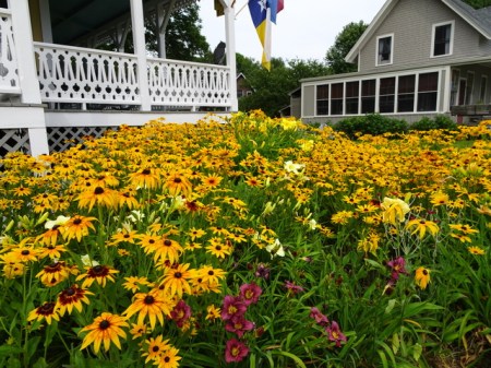 Every year I attend a garden tour in Maine, and this year it was the Georges River Land Trust’s 27th annual “Gardens in the Watershed Tour“. Each year this tour highlights gardens in a different area of the Georges River watershed, and this year it featured six gardens in Rockland, Owls Head, and South Thomaston. My post Gardens in the Watershed Tour 2018: Part One shows photos of the first five gardens on the tour. To read it, click here. The gardens were beautiful as was the scenery viewed while traveling between properties in this undeveloped area of Maine.