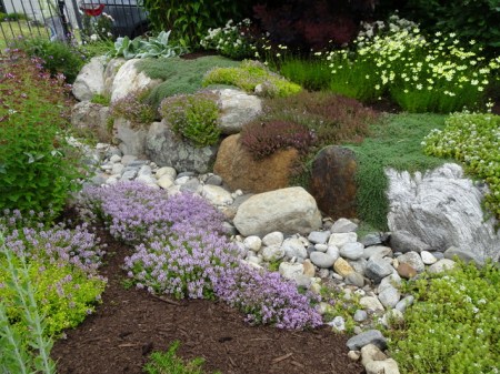 Unlikely as it seems, the final and best garden on the Watershed tour surrounded the Owls Head Post Office in Owls Head, another beautiful and undeveloped area of Maine. You would never know that it is five minutes from Rockland and 15 minutes from Camden. Just as photos of a painting are not the same as seeing the painting itself, my pictures of this garden do not do justice to the subtlety of the artistry. However, they do capture its beauty and attention to detail. Enjoy: