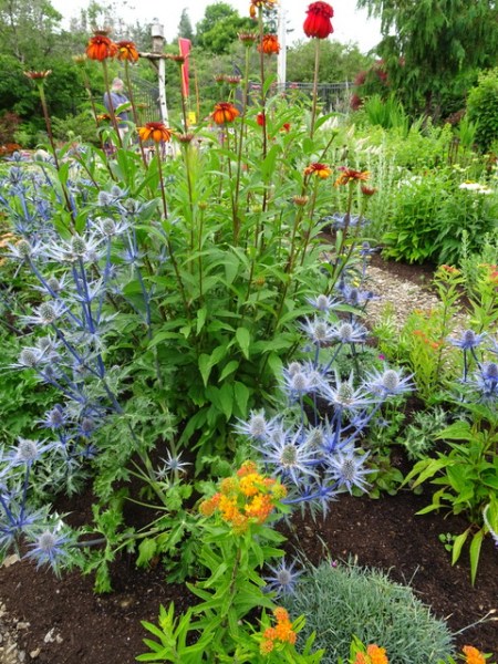 I was admiring the unusual pink color of the allium when I discovered that all the alliums in this garden were spray-painted.