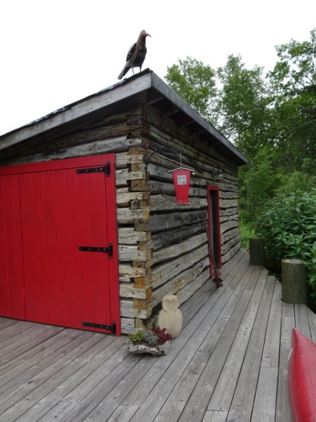 Plantings along the left side of the entrance path. The spiral staircase leads to the owner’s vacation home, which is above the post office. The building dates from the 1800s and has been used as a post office since 1931.