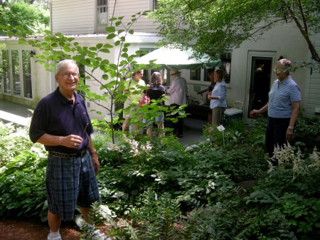Our Ashe magnolia with its gigantic white flowers just finished blooming. At its feet are sweeping stands of culver’s root, which will bloom in late July and August.