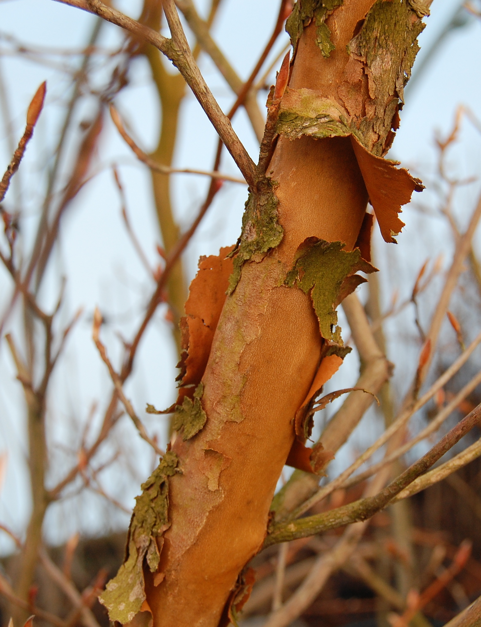 Stewartia koreanaKorean stewartia has attractive exfoliating bark that is especially ornamental in winter.