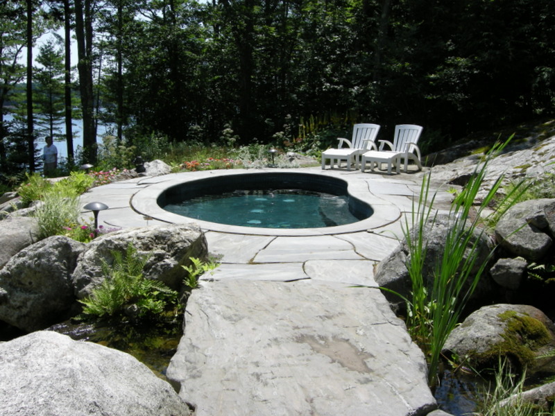A close up of the unusual “paving” shown in the photo above. The owners traveled all over the world for 30 years collecting ideas and objects for their garden.