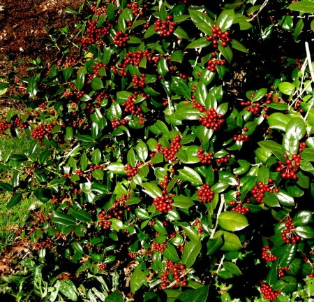 The berries of native winterberry hollies stand out in the landscape after their leaves have dropped. In my garden, robins strip the berries fairly early in the season, but I have noticed that in most locations they persist well into the winter.