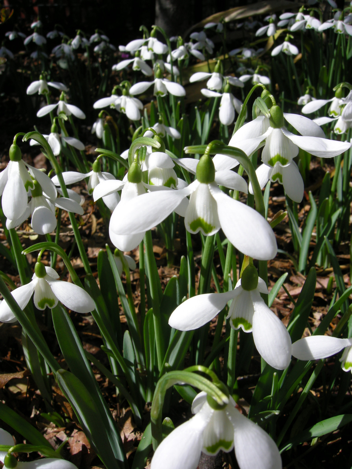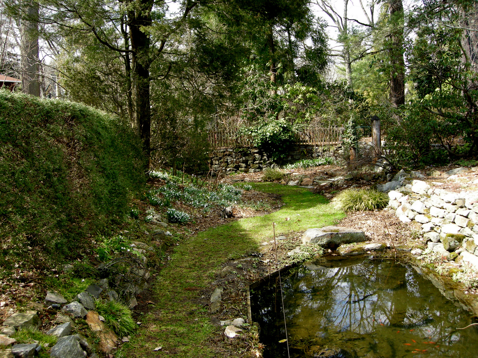 We crossed a stone bridge to view the meadow where snow crocus and common and giant snowdrops were massed to be succeeded by daffodils, camassia, and then summer and fall blooming flowers.