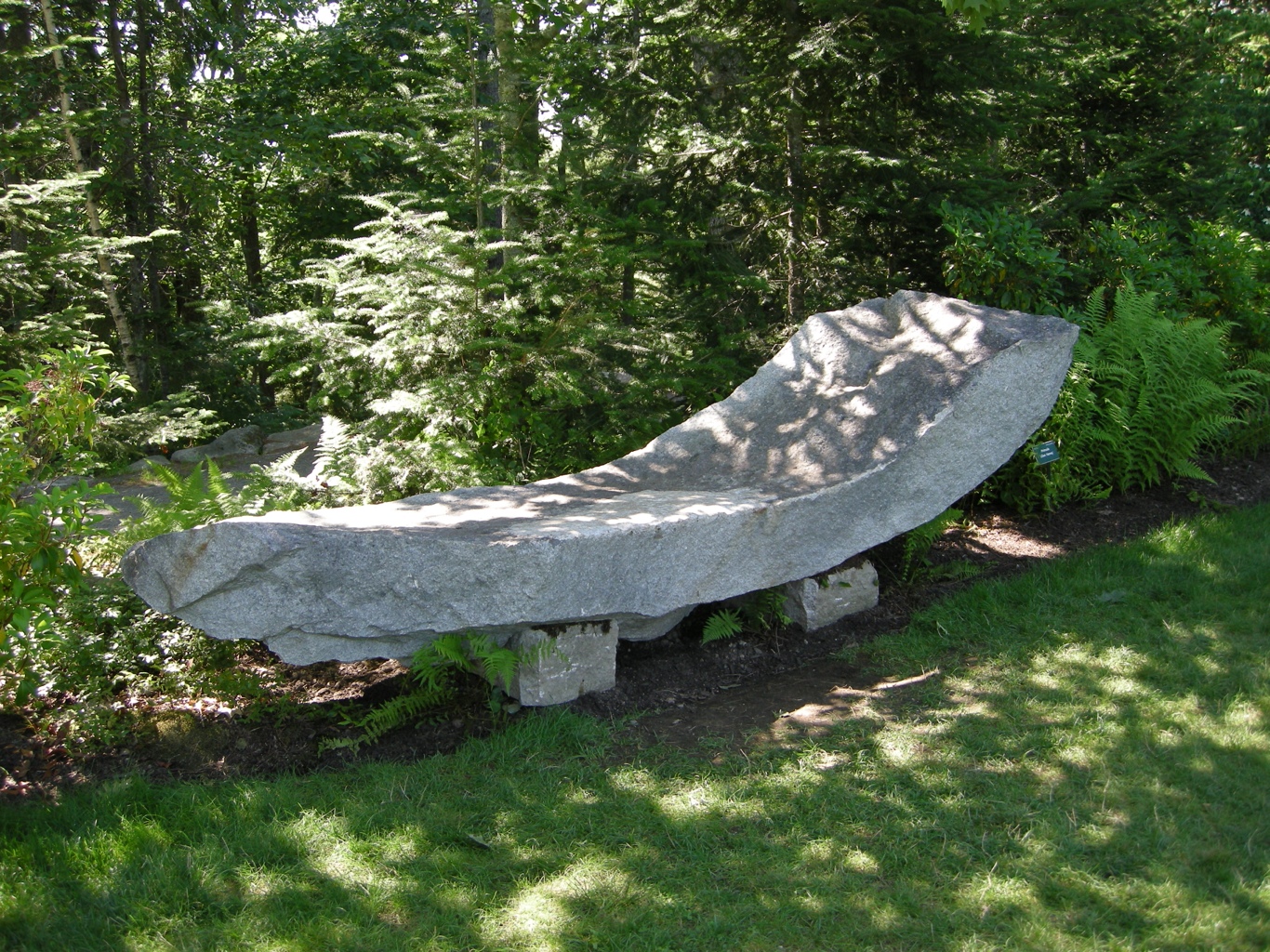 Seating in both public and private gardens should be sited in a way that directs visitors to an important view or encourages them to enjoy a new perspective while they sit. When choosing rock, I am partial to rounded boulders, fully integrated into the landscape to the point where you almost can’t see them. However, this approach would not be appropriate in a public botanical garden where you want tired visitors to be able to easily locate a resting spot. The following photos were all taken at the CMBG and show a variety of ways to use rock as garden seating: