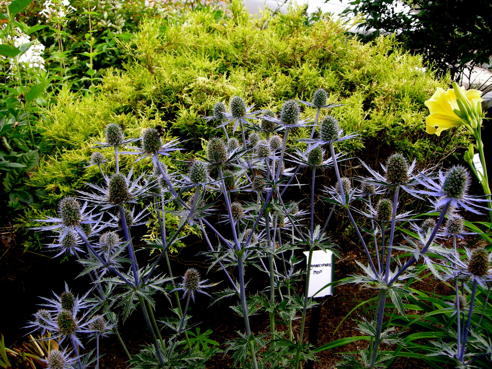I was admiring the unusual pink color of the allium when I discovered that all the alliums in this garden were spray-painted.
