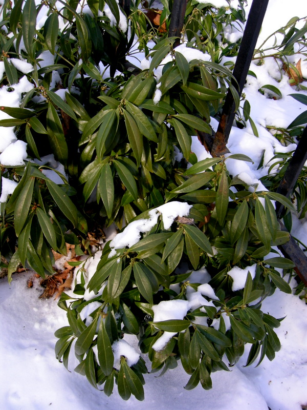 This beautiful hybrid hellebore, H. x hybridus ‘Pink Tea Cup’, is fully out right now. It usually blooms in February. Photo 12/31/11