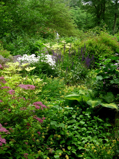 Moving up the hill, ‘Eye Declare’ hosta steals the show when it emerges in the Sycamore Garden in mid-spring (for orientation, you can see the Blue and Silver Garden in the top right of the photo). The trees are actually London plane trees but the garden’s name stuck. 5/8/2011