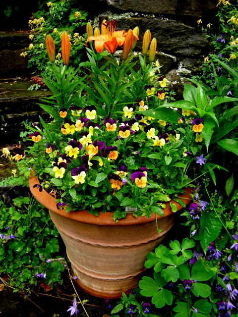 Stone stairs lead from the nursery area, past the original entrance to the two-room gardener’s cottage that is now our home, to the Main Terrace. All the areas of our garden have names, which I will capitalize. That way my husband Michael and I can communicate about garden maintenance. During our last open house, visitors were overheard referring to “the team of workers who [must] take care of the gardens.” We are still laughing and wondering when our team will arrive! Michael does most of the maintenance, and I help when I can. 5/7/2012