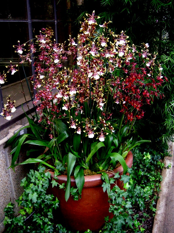 In the Visitor Center, a very large wall with potted orchids of every description inspires visitors to make the freezing trek to the conservatory.
