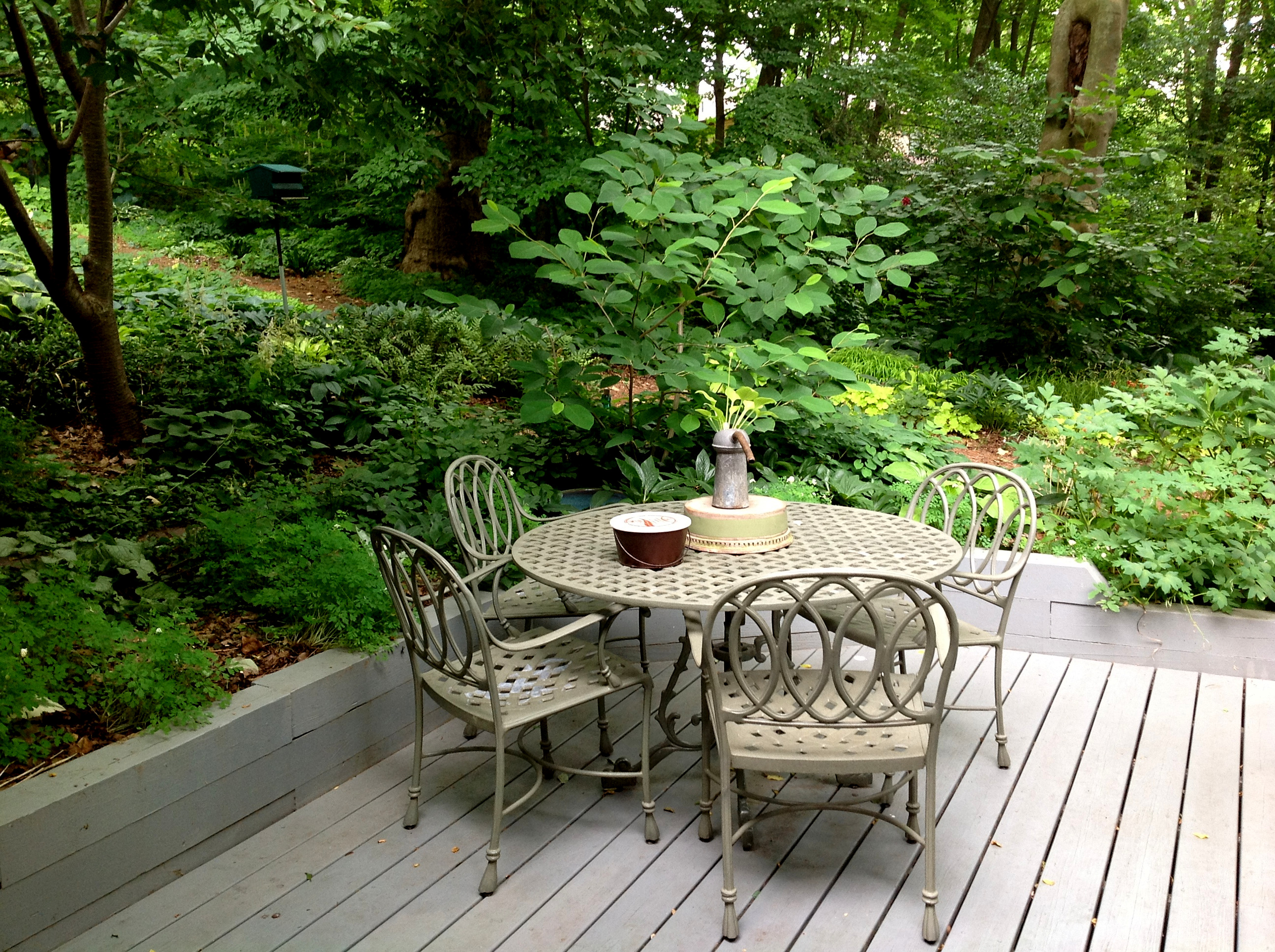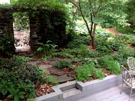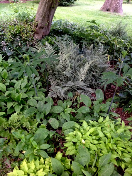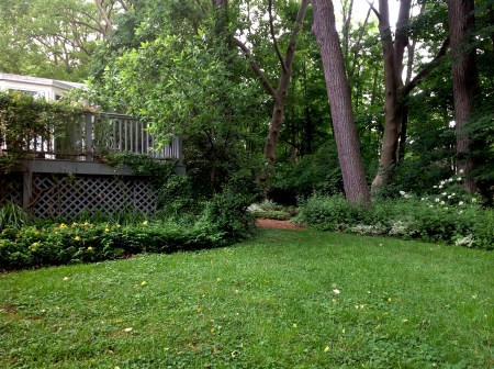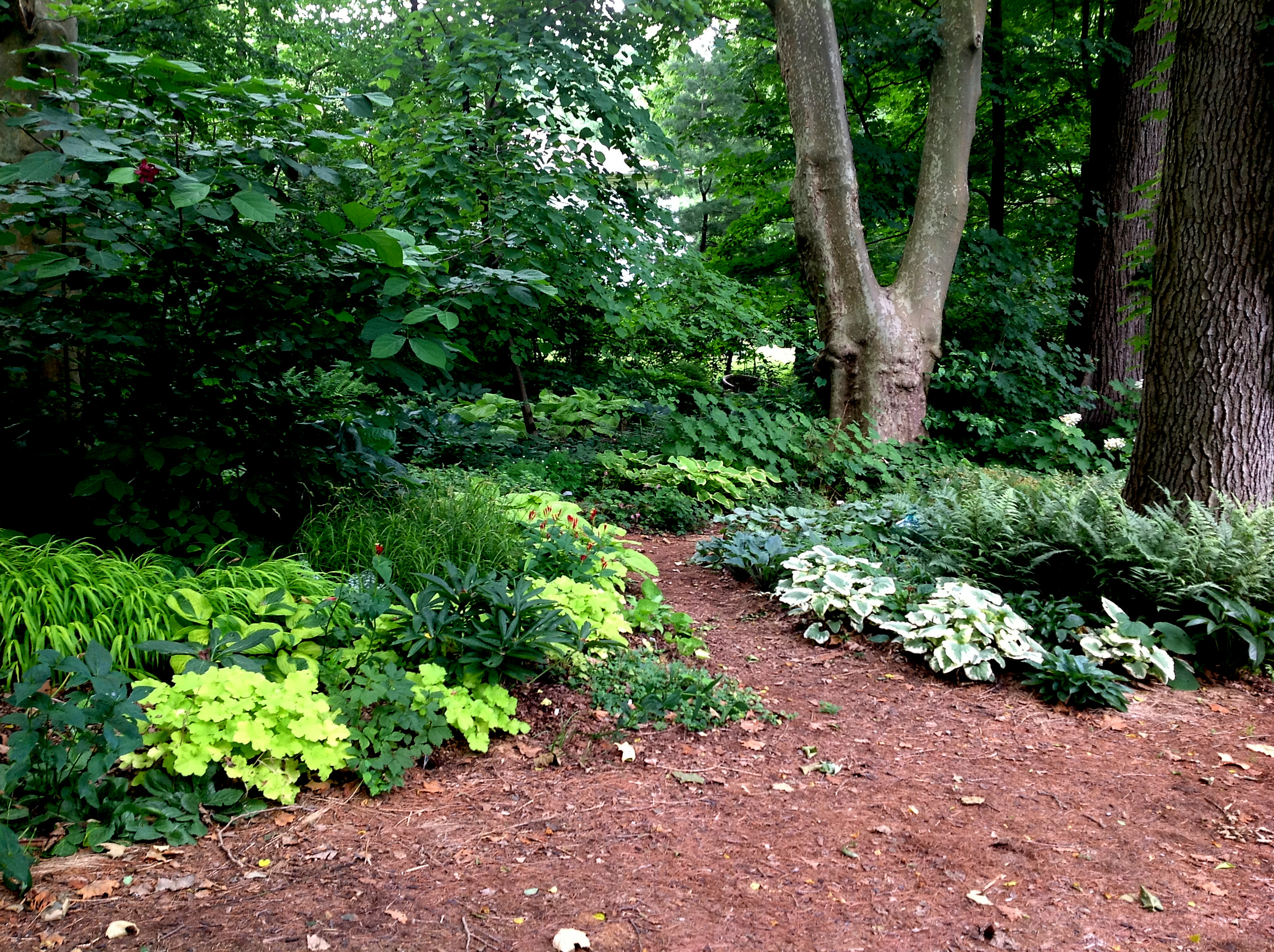 Three things came together recently to help me solve a landscaping problem that had bothered me for years. First, I was reading one of my favorite blogs called Conrad Art & Glass Gardens authored by Larry Conrad. In a recent post he talked about his favorite combinations including one achieved by massing white and pink smooth hydrangeas. I have been interested in smooth hydrangea, H. arborescens, because it is very shade tolerant. I also like it because it is a native plant found through out much of the eastern United States, including Pennsylvania. The well known cultivar ‘Annabelle’ with very large white mophead flowers was discovered in the wild in the 1960s. It grows well in Maine and has proven to be quite deer resistant on the island where my family vacations.