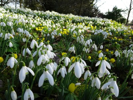 The setting is very natural with thousands upon thousands of snowdrops in among the grass and winter aconites.